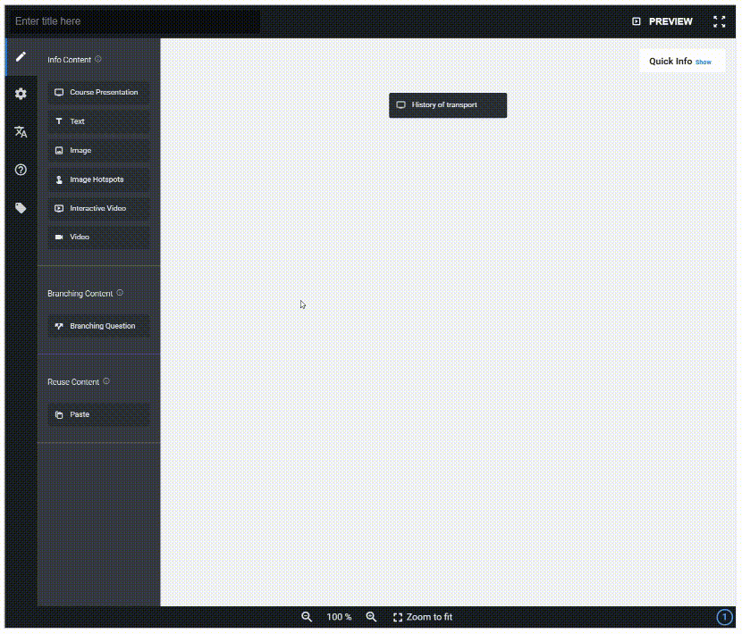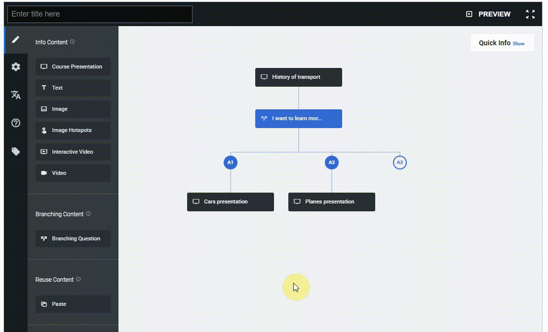 No tienes que crear contenido desde cero. También puedes usar contenido H5P existente en el Branching Scenario.