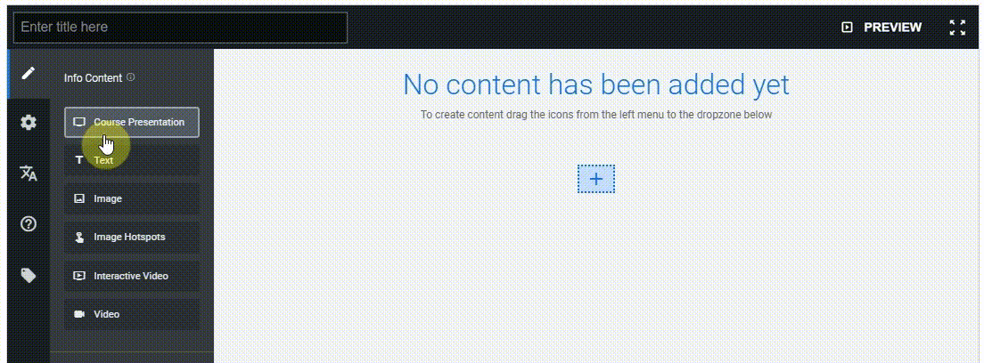 - Comienza agregando un título. El título identificará el contenido en la lista de H5P y no será visible para el usuario.